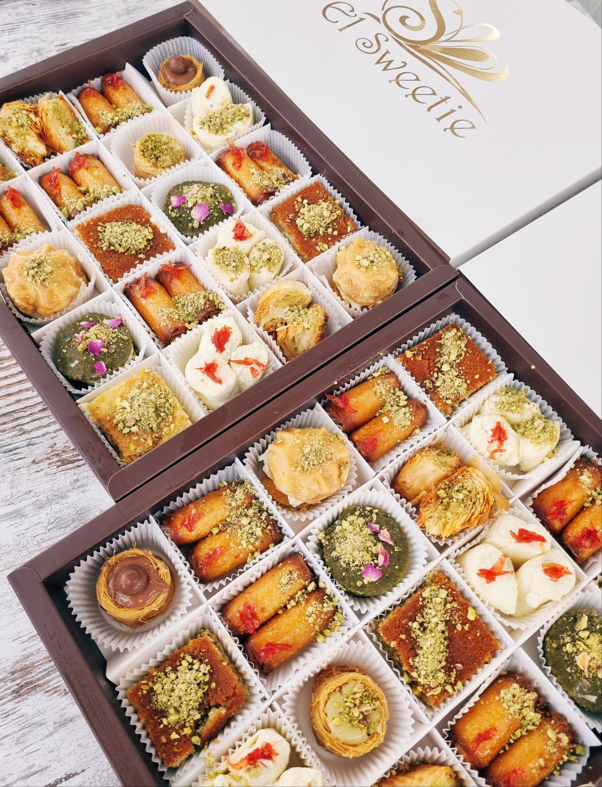 A mix of our Ashta favourites, served in one gift box with 20 pieces. Served with a bottle of rosewater syrup.